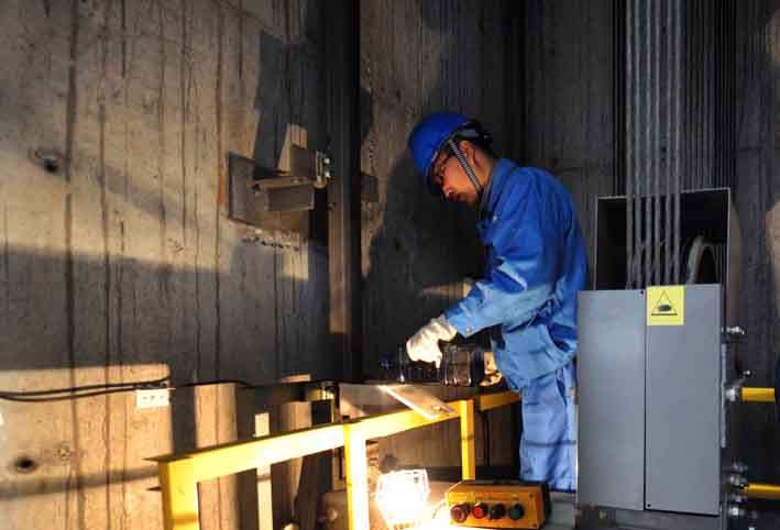 哈尔滨乐动游戏网(中国)安卓通用版维保工人正在井道维保作业