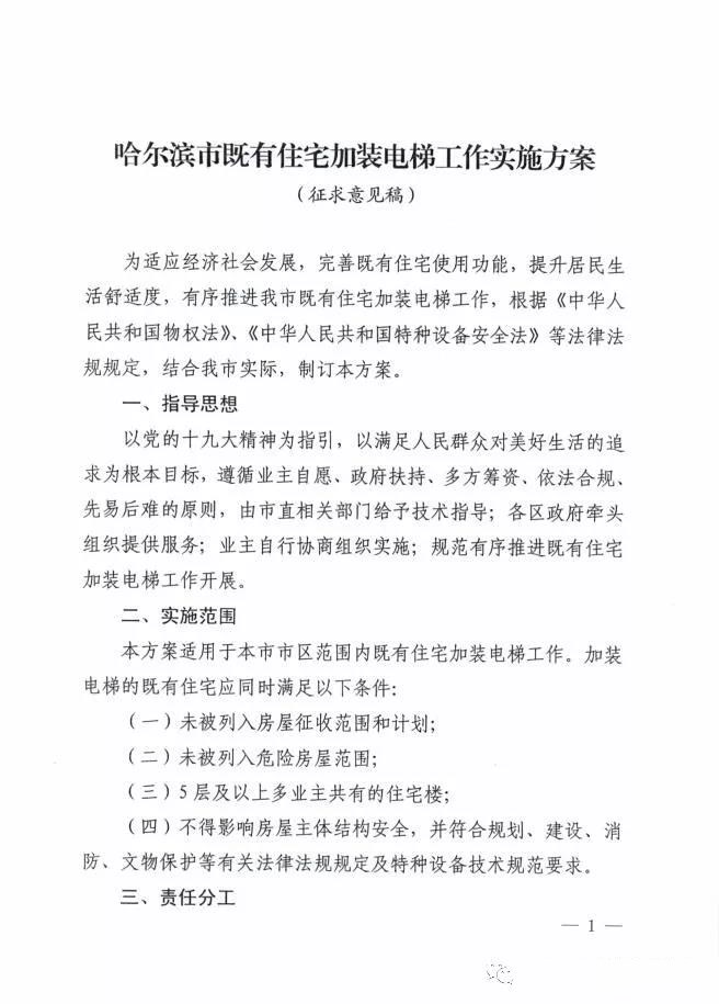 本站获悉,我省哈尔滨市日前由哈尔滨市住房和城乡建设委员会正式颁布了《哈尔滨市既有住宅加装乐动游戏网(中国)安卓通用版工作实施方案》,凡是符合要求的住宅楼,加装乐动游戏网(中国)安卓通用版政府每台补助15万元,如有加装意愿的单元抓紧时间申报。