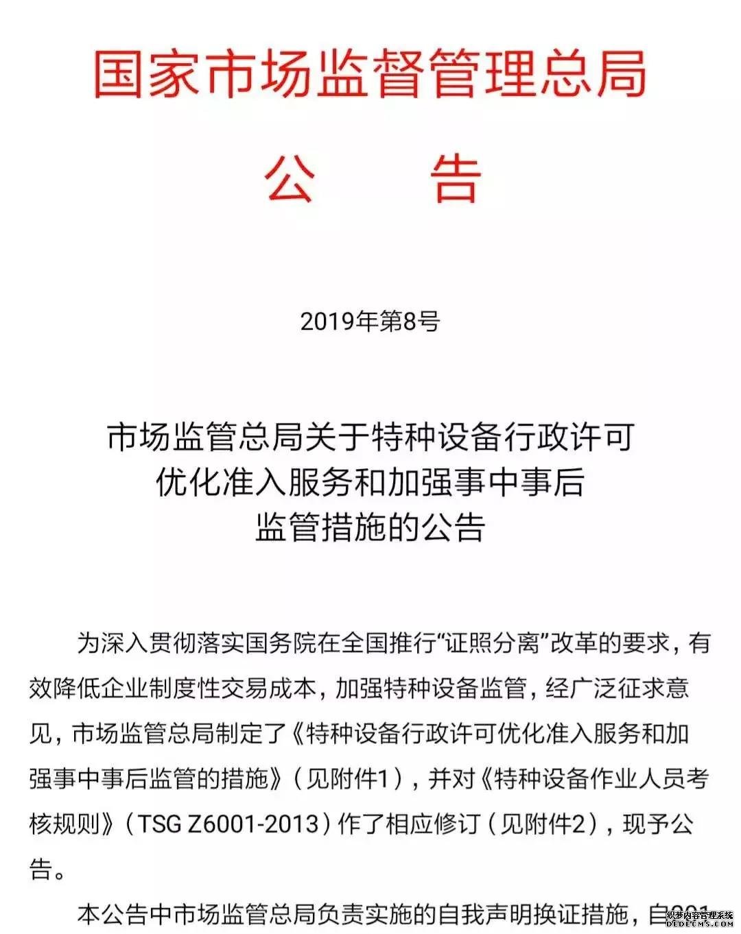 (一)压缩审批时间和简化申请资料。特种设备生产单位(设计、制造、安装、修理、改造,下同)许可和检验检测机构核准审批发证时间进一步压缩5个工作日。特种设备生产单位许可取证申请资料简化为许可申请书,发证机关对营业执照实施在线核验。型式试验与监督检验不作为生产单位许可取证的前置条件,生产单位按照安全技术规范的要求,进行产品型式试验和监督检验。
